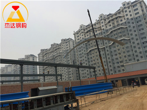 從施工現場照片可以看出,鋼結構的焊接與安裝工藝規范,連接部分設計合理,確保了整體的安全性能。該拱形屋頂的設計不僅兼顧了結構強度,還考慮了施工的便捷性和經濟性。