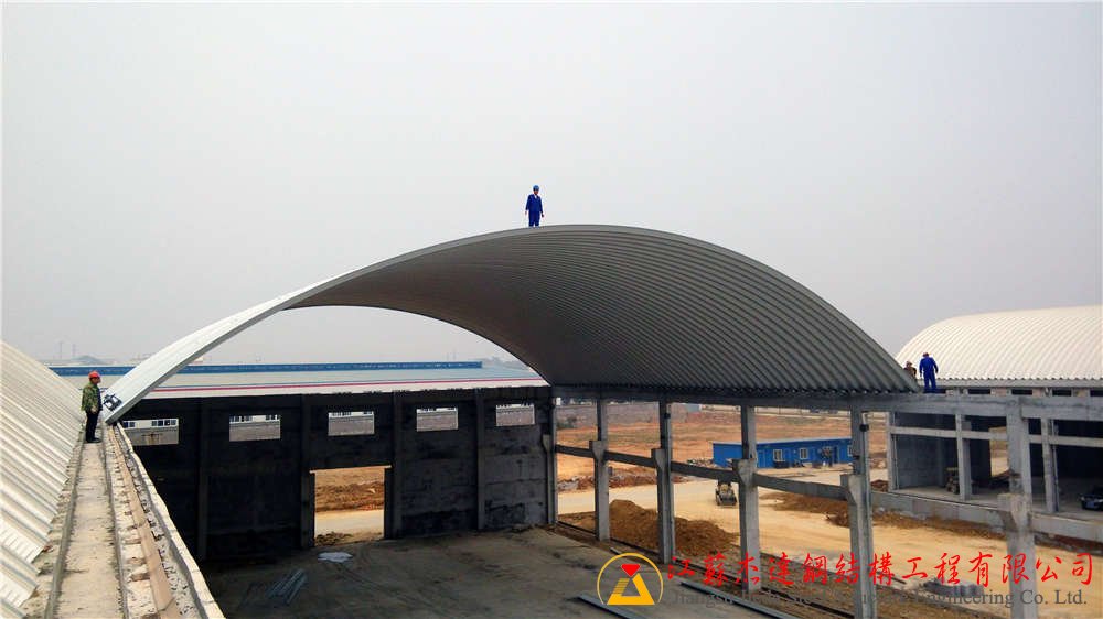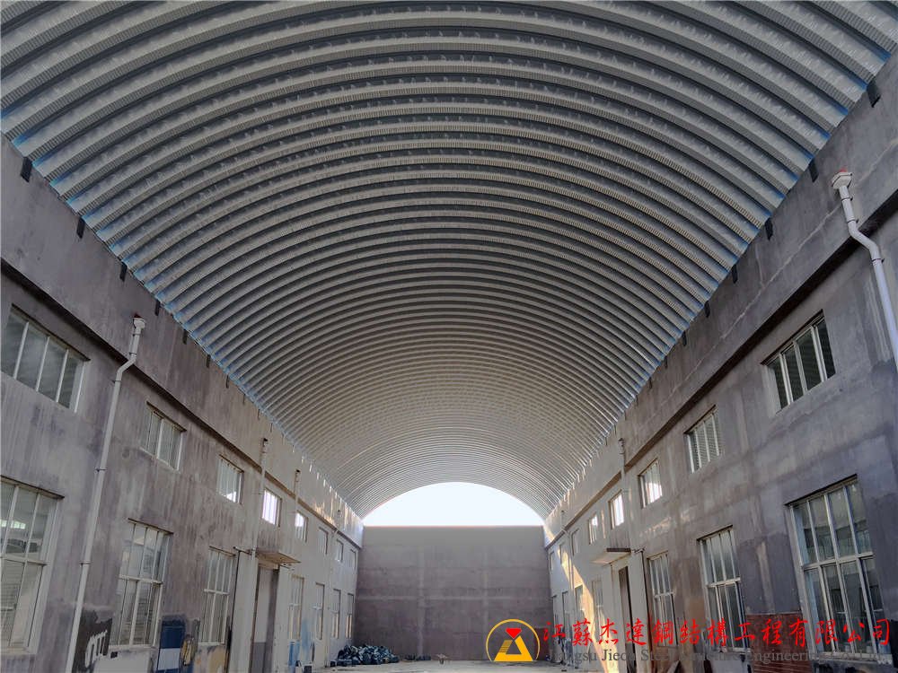 拱形屋頂在工業(yè)建筑中較為常見,尤其適用于連接兩棟磚混結(jié)構(gòu)廠房之間的過(guò)道部分,既能實(shí)現(xiàn)空間覆蓋,也方便施工和維護(hù)。