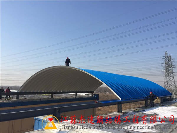 近日,由江蘇杰達鋼結構工程有限公司承建的遼寧省某糧食儲備庫倉間罩棚拱形屋面工程順利完工,具備優良的防風防雨性能,展示了杰達鋼構在糧食倉儲領域的工程實力。工程名稱...