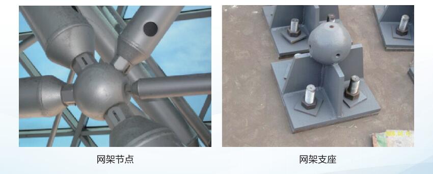 網架結構的桿件截面應根據強度和穩定性計算確定。為減小壓桿的計算長度增加其穩定性,可采用增設再分桿及支撐桿等措施。用鋼材制作的板型網架及雙層殼型網架的節點,主要有十字板節點、焊接空心球節點及螺栓球節點三種形式。十字板節點適用于型鋼桿件的網架結構,桿件與節點板的連接,采用焊接或高強螺栓連接??招那蚬濣c及螺栓球節點適用于鋼管桿件的網架結構。單層殼型網架的節點應能承受彎曲內力,一般情況下,節點的耗鋼量占整個鋼網架結構用鋼量的15~20%。