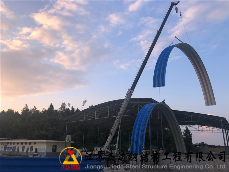 本工程位于重慶豐都重水礦山內(nèi),采用拱形屋頂設(shè)計,結(jié)合礦區(qū)特殊環(huán)境,體現(xiàn)了鋼結(jié)構(gòu)施工的實用與美觀兼顧。