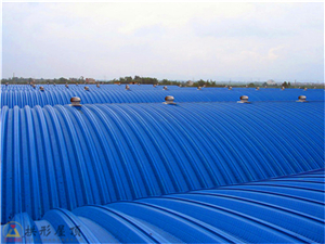 這種結構的不足之處是,為配合拱形屋架制作較復雜,需將上弦角鋼加工成弧形。同時,這種屋頂在檢修時有一定困難,因表面光滑不易攀登,一般要在屋頂一端栓繩,在另一端沿繩攀上。