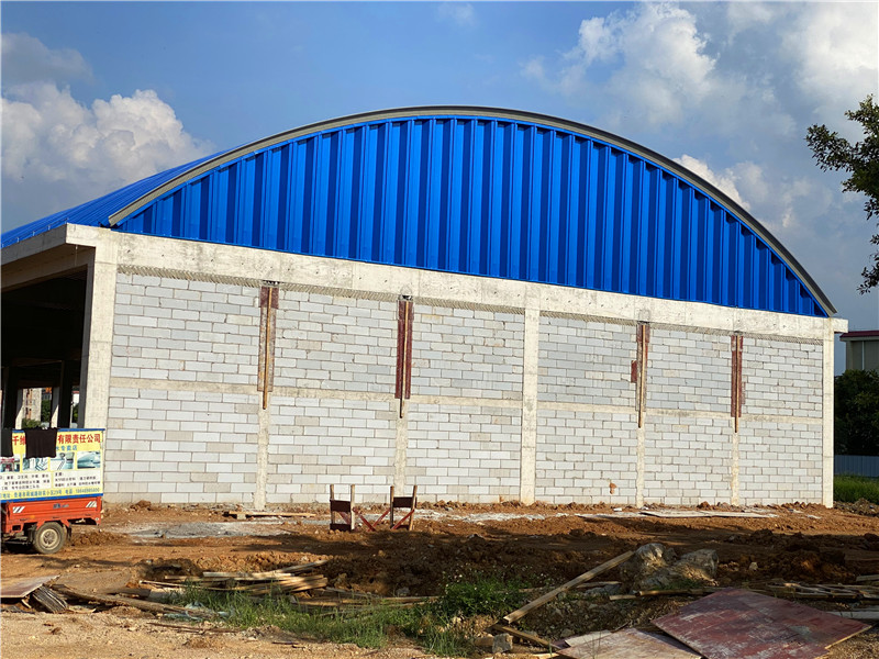 工程名稱:廣西貴港車庫拱形波紋鋼屋蓋安裝工程